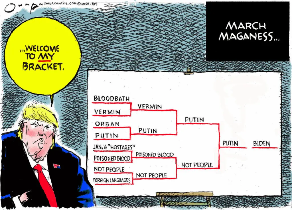 Subject: RE: Trump INDICTED x4 NO new Trump threads part III From: Donuel Date: 13 Nov 23 - 09:19 AM I was one of the first that warned of this Nazi threat in which all the words and strategies of Trump come from Mussellini's black shirts and Hitler's brown shirts and Mein Kampf. Vermin and poisoning the blood of our country are verbatim propaganda phrases coming out of the mouth of Trump that were used in the 1930's. Country Club Republicans are still sleepwalking into the abyss. |